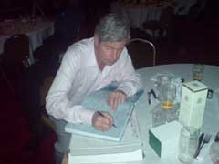 Mike and Bibs have a chat on the top table before Bibs gets the Auction underway. The auction was a great success with plenty of interesting stuff for people to bid on. A Lotus Drivers Day went for over £600, a large F1 print signed by Jenson Button went for over £500. Some futuristic Esprit pictures made nearly £500 between them. There was also T-shirts, manuals, DVD's, Books and a life-time membership of ClubLEW making more money for charity. Mike also spent a lot of time signing stuff for both the auction pieces and for owners. The LEF Factory Day ended up raising over £3,500 for charity. It just got better!