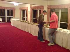 Bibs and Kimbers get friendly in Great Yarmouth (we heard the Kimbers asked for the pink shirt and it's just a rumor bibs did it for a joke). We counted 63 Esprits, with more turning up during the afternoon. The convoy returned to the hotel around 6.30pm. Most people Signed in for the factory day and track time before the food. £20 for the day, £10 to get on the track. Priceless! Time to feed the masses! Kimber keeps his favourite T-shirt on for the buffet at 8pm.