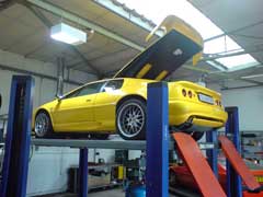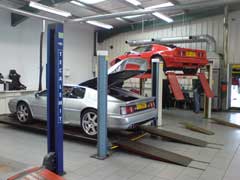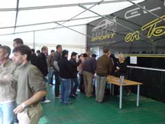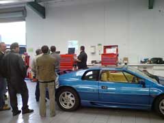 Lotus Motorsport were also offering to do work on Esprits the whole day. Quite a few people took them up on this offer in advance to get some servicing, wheel alignment and other stuff done. Others needed a little bit of help when they turned up and Motorsport did all they could to sort out any problems people had on the day. A great service from the factory. Rob who'd travelled from Switzerland had a service done and LEW later saw it out on the track to check everything out! Whoelse has a test track outside to make sure everything's ok!