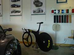 The famous Lotus Bike that helped Britain win an olympic gold medal! We also spy the new suspension, which you can now order from Lotus Motorsport and sent directly to your door! A Gearbox at the enterance with some soapbox racers in the background.