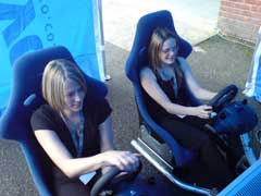 The racing car simulators with Lotus challange and Gran tourismo 4 was popular all day! Even the staff got in on the act. Niki even completed a lap! Kato declined from joining in to save the embarrassment of getting beaten by the girls!