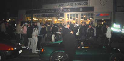 It was then time to make our way to the ACE CAFE LONDON to meet up with a few more owners who had gone straight there. With around 15 Esprit trying to get through London traffic on the North Circular, we were never going to stay together, but all managed to get there in the end! Wednesday night is MAX POWER night, with supe'd up motors everywhere. After all managing to find somewhere to park the organisers cleared the road so we could all park in a long line outside the cafe. Unfortunately my pictures where struggling for light, so only two where of any use and really don't show the spectacle of 21+ Esprits lined up.