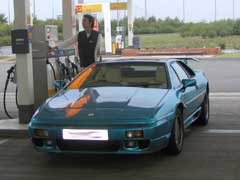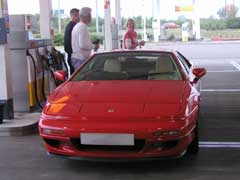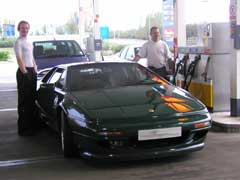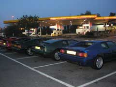 We all roared into a petrol station and definitely caused one hell of a stir among the customers and staff. Straight after there was a set of traffic lights which caught four of us in front of a crowd of teenagers all cheering and yelling at the cars. So not wanting to disappoint, they were treated to an F1 style line up of four Esprits in two lanes waiting for the green light! The lights changed and clutches were dropped and everyone screamed off... much to his embarrassment John was treated to the great Lotus "Gearbox Equaliser" - that feature that brings us all back to earth - Cerrrrunch!!!