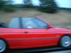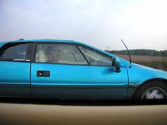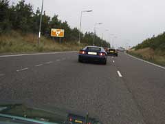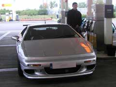 Then there were the two girls in the Escort cabriolet! ;) We got a rather blurry photo as we pulled alongside them but not of the *real* 'moment' which was with the girls car sandwiched in the middle lane with Adam G's S4s on their outside and Alex R's S350 on their inside, followed by three more Esprits behind at 100 miles an hour! Alex ROARED off in a display of Lotus superiority, however Adam G. decided the temptation was too great and broke convoy to follow them into a service station. It turns out they were girl racers meeting for Da Cruise (innit!) The driver said she has had 48 points on her license and just to top it all off, she had a Ferrari centre cap on her Escort's steering wheel! :-s We looked around at all the bodykitted miscellany and beat a hasty retreat and blasted off to catch everybody back up!