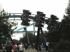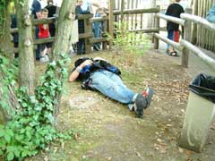 The theme park itself was huge fun and it was agreed by all that we couldn't have asked to spend the day with a nicer, more open group of people. Most rides were tried at least once and the vertical drop "Oblivion" seemed to make the greatest impression - not least because it decided to break down for 15 minutes leaving a carriage full of very nervous passengers right at the top, staring into the black hole and at the sarcastic "Don't Look Down" sign that awaited them at the bottom! Once stomachs had settled, one or two of us tried to single handedly eat everything in sight! (You know who you are!) ;-) At one point Adam Elise decided that queuing had all become too much to bear and climbed the fence and fell asleep in full view of everyone who was still waiting!