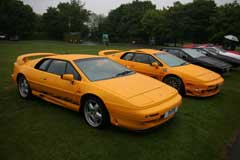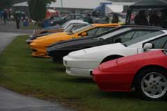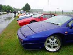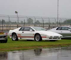 The ClubLotus Track Day was held at Castle Combe on 29th May 2009. The event was good fun and was attended by plenty of Esprits. With the weather for a bank holiday weekend back to the usual wet and horrible, but this didn't stop plenty of Lotus cars attending, including lots of Esprits. This event is basically a track day for Lotus car owners. You pay around £85 for two 15-minute session, morning and afternoon, Lotus only. Other than that it is free to attend and watch the cars on the track, plus if you bring your Lotus along, you can drive it around the circuit (parade lap) for free. A great day out!