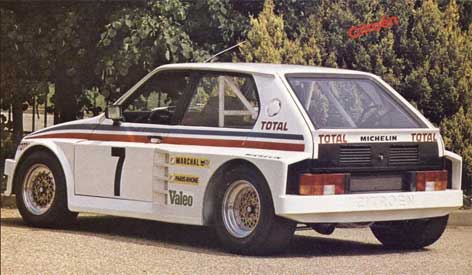In 1981, Citroen wanted to participate in the World Rally Championship, starting with their then-new model, the Visa. And so the ‘Genesis Project’ was started. Guy Verrier, responsible for Citroen’s Motorsport division, launched the Visa Rally Trophy and wanted to create a car that could compete with the Renault 5 Turbo. Citroen wanted to challenge Renault by creating a car that could compete in Group B. Various constructors and companies were asked to create a study model. This resulted in 8 different prototypes being built with power ranging from 145 to 290 bhp and engines from 1219 to 1440 cc. In fact the prototype showed here is a Lotus Esprit Turbo chassis with the body from a Citroen Visa, with the usual 4 cylinder 2174cc, 210bhp Lotus engine and 5 speed 'box from the Citroen SM.
