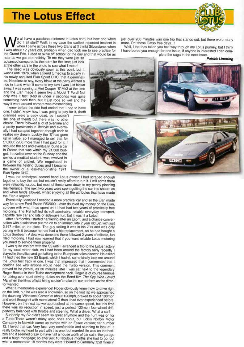 Part Two HERE Thanks to ClubLotus for allowing us to publish their article. If you have any comments to add to this page. Feel free to e-mail at admin@lotusespritworld.com.