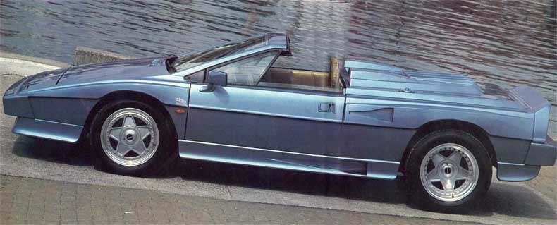 These are the unofficial Esprit Convertible that are still on the roads today. Only seen on the Giugiaro Esprit, two companies chopped the roof and rear hatch and produced a hood and new hatch. This conversion doesn't look cheap with lots of bodywork changes.