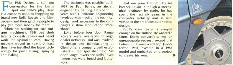 I do not think that this is a prototype of the PBB St. Tropez versions. I think it's a "Ritchies Design" because LOTUS / Ritchies is stamped on the registration plate. Different roof design, different turbo and earlier origin of this car makes me sure it's not PBB and not Kollinger.