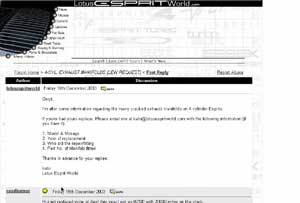 A sportscar nuts heaven. Covers Lotus, TVR, Porsche among others. Updated daily and covering news, racing and general pistonhead stuff. Top site. They run many forum for different makes and models. The Esprit one runs off Lotus Esprit World, which many of you have probably visited already. This list has suffered due to the success of LEF with not many post. Might be worth a look, but the LEF is the place to be.