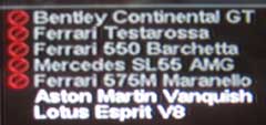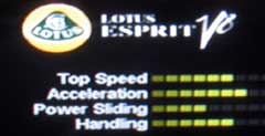 This X-Box game features some of the best cars ever built (plus a few others). The Esprit is featured, but not very well. It's been placed in the Grand Tourers group with cars like the Bentley Continental GT, Ferrari 550 and Mercedes SL55 (full list below). If that isn't bad enough, look at the stats below. Apparently the Aston Martin Vanquish handles better than the Esprit. Now I've never driven an Aston, but I doubt they're every built a car that handles better than the Esprit!