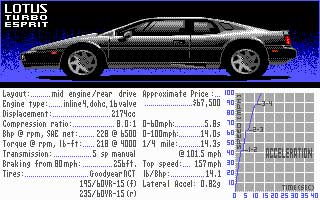 It featured five cars, including a Lotus Turbo Esprit.In the followup "Test Drive II - The Duel" a 1988 Lotus Turbo Esprit is available in the add-on disk "/The Supercars/".