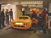 A. Hangar 111's rollers are good for around 1000hp and allow mapping of cars up to 500hp. In terms of accuraccy, our dyno put one of the last built V8 Esprit's bang on factory spec. It is sadly all too common for people who have spent a large amount of money on modifications where the final dyno results are disappointing to rant about rolling roads being innaccurate. This leads to mass hysteria and the rumours spread. H111 have performed extensive before and after testing of the their Elise and seen predictable results from the standard car through to the results expected after modifying. All other cars we have had on there have been close to stated figures and/or factory figures and if the figures have been higher or lower than expected it is usually for an easy to spot reason (e.g. duff management, poor quality fuel, turbo actuator misadjusted etc.). What H111 say is that their Hyper Dyno unit is a high-end derivative where both rollers are loaded - by this they mean that super accurate data is gathered during the gearing run and while the power run is being executed. In fact it's so advanced you can put some cars on there, connect up the ECU and it will take you through a self-mapping process where all you have to do is follow the on-screen instructions for the rpm that the rollers would like you to hold - the fuelling is then setup automatically! Sadly not for any Lotus vehicles!