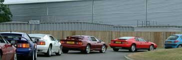 Lotus Esprit World held it's first meeting at Silverstone Race Circuit to watch John Hazzard's first outing in his self prepared Esprit V8 Racer. With notice a little short and it being a bank holiday weekend the turnout of Esprit owners was excellent. On the trip to the first meet up at the Green Man Inn. I spotted Dermot, Doors and Dan up ahead, catching them up just before the pub meant at least 4 Esprits (and one Exige, as Phil's 350 wasn't ready). The Green Man carpark was already full of Esprit's when we turned up. Including most of the usual suspects.