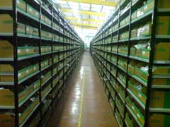 Parts come in from the factory and suppliers and go out to dealers from the rear of the facility. There's a packing department for bagging up all those little nuts and bolts you order. Everything goes into the system to keep everything running smoothly.