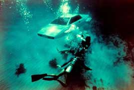 The Lotus Esprit can fold up its wheels and transform into a fully operational submarine—complete with fins and periscope. A monitor within the car-sub allows Bond to track the hovering helicopter still in pursuit of him. The Lotus fires off a missile and blows the chopper clear out of the air. Under the sea, this car has the ability to release depth charges and "smoke" screens. No other Bond car can top this one for amazing feats.