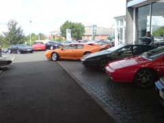 With 20 Esprits turning heads as we leave the services, its a quick blast to the Dealership which is on the A38 in Bromsgrove. We arrived about 11.00am and start the process of getting 20 Esprit on the forecourt.