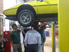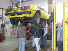 Best of all, we were given 3 ramps and a mechanic to play with. Obviously no major work could be done, but around six Esprits made it up in the air and were given a looking over by Paul. Torch in hand, he advised owners of anything needing doing. A few nuts were tighten here and there as well.