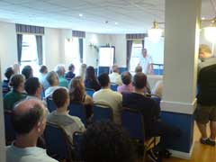 After food it was back into our meeting room to listen to Esprit Platform Manager Brian Angus from Lotus Cars. He gave everyone a breakdown of what's happening at the factory and had been playing with the new Eagle on Friday, which will soon be unveiled at the motor show. A Q&A followed and then Bibs from LEF address the group on the Factory Day coming up in September.
