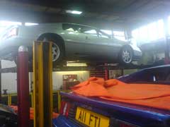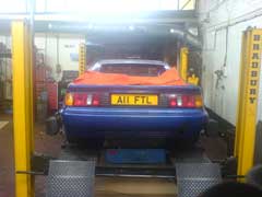 The workshop is as you'd expect from a very well respected Lotus specialist. We'd never visited PMSC's before, but we'd heard about his reputation long ago. We've never heard a bad word against this Lotus establishment, which is a good sign. Paul's customers seem to be a very happy bunch. Paul showed us some of the equipment used regularly by the Esprit. The alignment equipment at PMSC's is laser guided, so adjustments can be made real time to get the Esprit set-up just right. With alignment being a critical factor in the Esprits handling, this sort of thing helps. Especially with the Lotus Springs & Dampers due to launch soon.