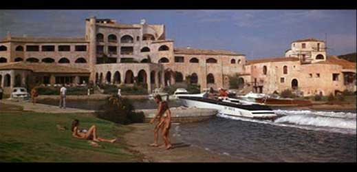 The first location to visit was the famous ‘Cala de Volpe’ hotel. This is located next to the town of Porto Cervo, and is where all of the scenes in the hotel where Bond checks in are filmed, as well as where Bond gets on board Naomis boat to go out to Strombergs sea platform thing.
