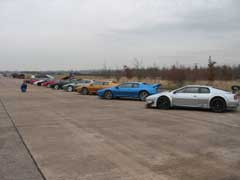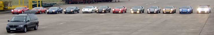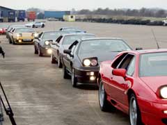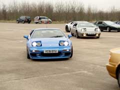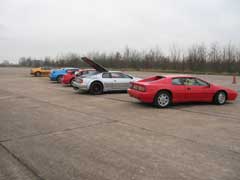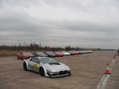 Then it was some time for some REAL fun. With 12 Esprits (none of the same model) all lined up at one end of the run way. It was to see who broke first. As soon as the first Esprit had moved an inch all twelve where shooting up the runway. Once at the other end, a slow and careful turning process was followed by another roar up the runway. This went on for a while, but before we started doing some slow laps nose-to-tail for some different shots.