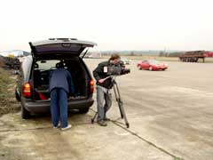 Now it was time for some action filming. All the models lined up behind the NMTV Van and followed it down the runway while the film crew shot from the rear of the van. With Bill sitting in the back waving each model on and passed the van to reveal the next model in the Esprit history.