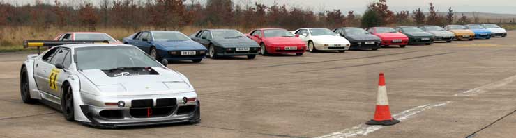 We then line all the available models in chronological order, with the racer out at the front. Howard Bartrop (professional photographer and 88 NA Esprit owner) came down to take plenty of pictures, including a panoramic one of this line up.