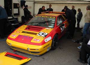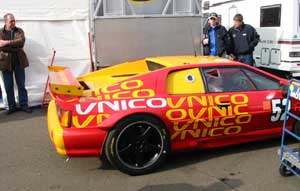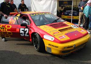 The Esprit's final checks were finished and its off to the pit lane to commence battle with the other GT's. The Full list of makes & models entered are: Lotus Esprit, Saleen S7, TVR Tuscan (x3), Porsche 911 GT3 (x2), Ferrari 360 (x2), Marcos Mantara (x2), Marcos Mantis (x2), Morgan Aero, Lister Storm, TVR Cerbera, Stealth B6 and a Chrysler Viper.