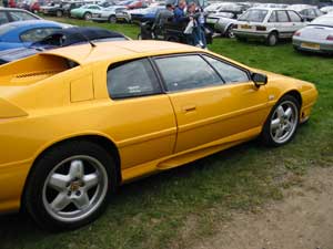 Parking up in a field (not the best place to take an Esprit), we found a large amount of TVR's and quite a few elises. A couple of Porsche's and Ferrari's brighten things up along side the Jap wannbes. We spotted one other Esprit, a yellow GT3 with a V8-SE wing in the car park with a number plate ending ESP.