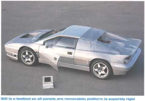 Underneath (and the major body panels are detachable so you can have a good look), SID makes you gulp. For a start, it has full active suspension - no springs, no dampers, no anti-roll bars, just a collection of computer-controlled electro-hydraulic actuators that control the body's movement and attitude in a 'closed loop', irrespective of road surface or cornering speed.