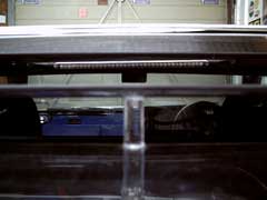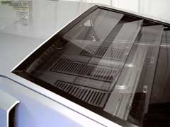 I have know finished the rear hatch by bonding in a final finishing strip round the outer edges and also placing a support beam on the lower deck to add some strength to the bottom louvre that was taking all the weight. High level brake light was needed to complete the look so i bought one from a local motor shop £14.50 for an l.e.d one and fitted it on the inside of the hatch see pictures. Electric arial was damaged so i decided to remove it rather than replace it,and placed a rubber grommet in its empty hole,a little bit more weight reduction.