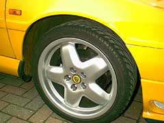 2002 style rear spoiler with integral stop light, color coded rear licence plate plinth, color coded v8 style rear valance for twin exit exhaust, 2002 style front chin piece and sport 350 rubber lip kit with new stainless steel mesh in place of the original chicken wire, fully refurbished original GT3 wheels with as new lotus centre caps and lotus dust caps and custom made Esprit GT3 number plates with Lotus decals.