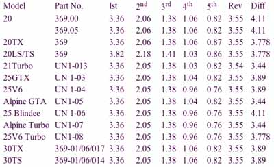 For reference the gear ratios of the Renault UN.. boxes are as follows.