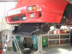 Well more work completed on my Esprit, this weekend I noticed I still had an oil leak after the three that I had repaired, so back over to the garage and up on the ramps again. It was impossible to see where the leak was from as there was so much oil everywhere, so Peter cleaned most of the mess and I took her out for another drive so as we could see where the problem was. Well on returning it was evident that the oil was gearbox as the smell is different from the engine oil. What was happening was that the main seal in the gearbox was leaking and with the shaft that goes into the flywheel going around at such a rate it was spraying the oil everywhere, including out of the viewing hole in the top of the bell housing. Hence oil was everywhere.