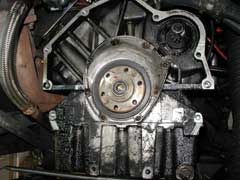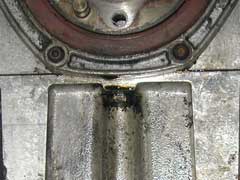 Well now back in Holland, Peter at Van Stens has started work on my car again, and he has found a leak from the Sump gasket around by the flywheel (see pics) so the Sump has come off and the whole lot is being cleaned before a new gasket is put on and everything reassembled again. Hopefully this time all the oil leaks will have gone, as I am missing my baby and need her for the www.maartenmemorial.com sponsored run on the 4th August. If you want to see the underside of an engine without the sump on...take a look..
