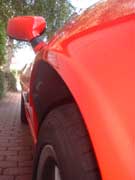 As you can see from the pictures she is Calypso Red and has a full leather black interior. She is in A1 condition both inside and out. Before picking her up at Van Sten Engineering, they gave her a 'C' Service, new battery, new front disks/ pads, new fog lamps (one had a crack), New bonnet badge (there was a small crack), replaced the pin strips and fitted new tyres all round, eventually fitting Dunlop SP9000's with a 45 profile instead of the useual 50 profile, I will let you know how the perform. I also had the footwell mats from my first Esprit fitted, as they were the right colour and the wiper blade, which was new as well. Finally there was a new M.O.T or APK as they call it in the Netherlands.