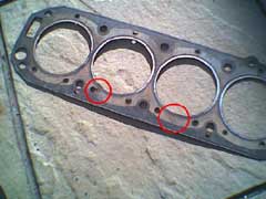 When the engine was stripped it was found that the head gasket had failed on the two inner pistons. Further inspection of the block revealed that there are 2 gasket location pins which had corroded way so that when the cylinder head was last replaced, so the gasket was not in the correct position and hence the failure.