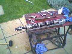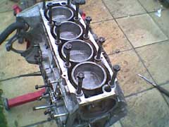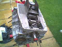 The crank was fitted with new main bearing shells, and the cleaned pistons fitted with new piston rings and big end shells.