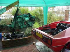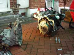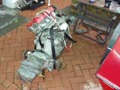 The first job was to get the engine/transaxle out and have a good look at the damage. As you can see from the pictures is was in need of a good clean.