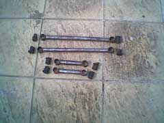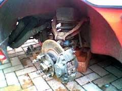 The 1/2" UNF mounting bolts for the rear suspension components were very corroded and required cutting to enable the rear suspension to be removed from the car. Once the rear suspension was removed it was disassembled and paint stripped.