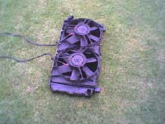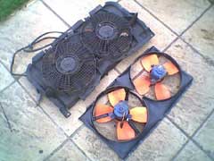 The old radiator fans and cowling were in poor condition with one fan motor seized, the mounting frames rusty and the ABS cowling broken beyond repair. A set of Peugeot 205 diesel fans and plastic cowling (which are a close match to the originals) have been fitted as these have a flow rate of about twice that of the old fans.