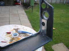 As the engine wasn't in the car when I first looked at it, I was able to get a good look at the rear of the galvanised steel chassis. It was in very good condition (but very scruffy looking) with no rust anywhere. The old paint was removed and a coat of black Hammerite made it look like new.