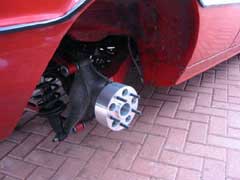 To get the rear wheels to fit, a pair of hub-centric spacers were required. As custom spacer had to be machined, I also took the opportunity to increase the rear track by 20mm each side to bring the rear wheel closer to the edge of the wheel arches. To help reduce un-sprung weight, the spacers were machined from lightweight 6082T6 aircraft grade alloy.