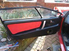 The door panels were removed from the car and totally stripped. All of the existing holes (include the Maxi door handles) were re-glassed to allow re-positioning of the internal fixtures.