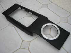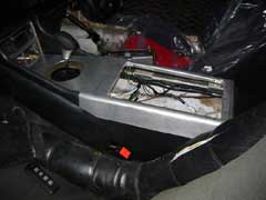 The centre consol was in poor condition. The leather around the radio/air vent surround was badly marked, as was the electric window switch housing and the elbow rest had collapsed. So a new centre channel cover was fabricated using aluminium and together with the radio surround, recovered to match the door panels. The electric window switches were to be replaced with a new custom current sensing window controller and the new window switches were relocated to the doors.