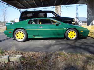 SEYear: 1991Colour: British Racing GreenInterior: YellowDriving Style: NormalMiles per year: 2,000 - 4,000Owned Since: October 2000Purchase from: PrivateServiced at: MyselfOther Cars: 1968 SIIA Landrover, 1991 DaimlerPrevious Lotus': NoneWhy an Esprit: I grew up in racing and one of the fellows who was a team owner also owned an Esprit. We would see him at most every track and every time I saw him I pleaded with him to bring it to the next race and let me take it for a spin. Finally he let me drive it and the desire to owne one has been there ever since.Upgrades: ABOV, Stainless Braided fuel lines, High flow fuel filter, Fuel Pressure gauge, Manual Boost Gauge, Seats bolted to floor w/floor sandwitched by steel reinforcement, Rebuilt clutch master cyl, new clutch slave cyl, new braided clutch line, stainless braided brake lines, Wilwood front calipars and discs, rebuilt rear calipars, All suspension components refinished, all suspension hardware replaced w/grade 8.8 or higher, rebuilt and refinished steering rack, Momo steering wheel, Sparco pedals, repositioned shift linkage for shorter shifting, replaced all wheel bearings, 90% of all hoses replaced w/ Aeroquip Socketless Hose, K&N air filter, Upgraded computer, new header tank, Spax dampers, Proper heat shielding for electrical lines, poly sway bar bushings, Gates belts, Dynomax exhaust, rebuilt chargecooler pump. Problems: Needs New Clutch