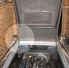 Engine hatch rams, mounting points modified to allow complete vertical opening
