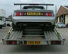 Above left : This is of the car picked up by a friend recommended to me who owns and operates this Transporter. Car was located in Chester and taken back to the Companies Depot in Liverpool for the weekend. Mark used loading blocks to make sure there was enough ground clearance at the front. He also disconnected battery and wiped off some of the cow poo found on the sills for me. Oh not to mention taking these pics for me too. Thank you Mark!! .
